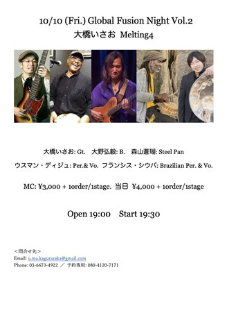 大橋いさお: Gt. 大野弘毅: B. 森山蒼瑚: Steel Pan