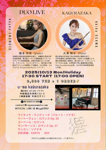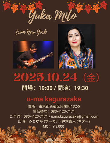 🎹 🎙️ 神無月・・10月 u-ma kagurazaka イベント情報 ・・ 🎸🎤