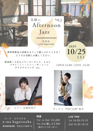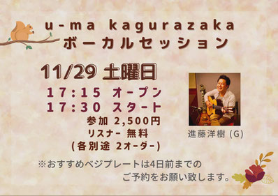 🎹 🎙️ 霜月・・11月 u-ma kagurazaka イベント情報 ・・ 🎸🎤