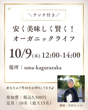 10/9(木) 『安く美味しく賢く!オーガニックライフ』